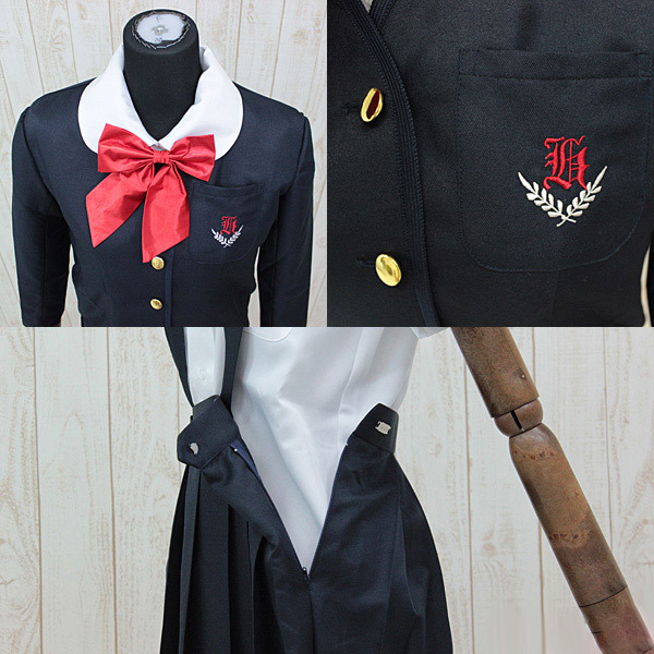 人気私立学校の制服を再現!お嬢様な気分を味わえる萌え系制服セット。 ●可愛い丸襟タイプの半袖ブラウス●アジャスター調節可能な赤リボン●金ボタン留め&刺繍入り胸ポケット付きのブレザー●H型フロント・X型バックのストラップ付き吊りスカート●膝にかかる程度の長めなお嬢様丈。 ブレザーを着ても脱いでも可愛い、正統派のお嬢様制服コスチューム。 スカートの個性的なストラップが特徴的です。 ※水洗い不可、塩素系漂白剤による漂白不可、アイロンは中温で当て布使用、ドライクリーニング可、色落ちの可能性があります。 |