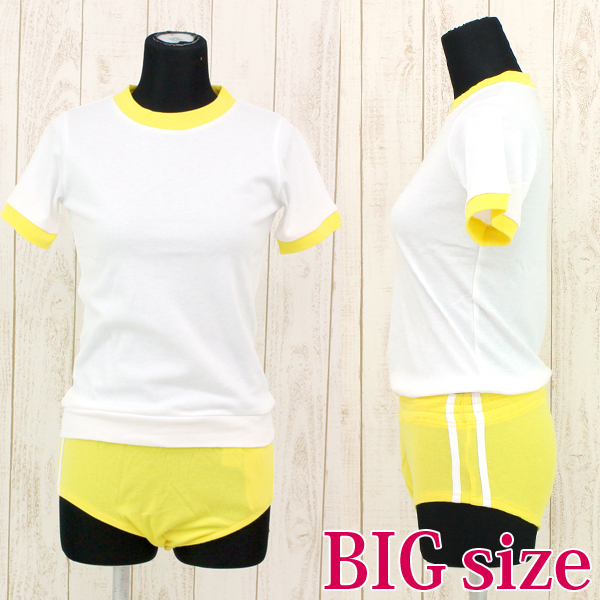 | ■仕様:BIGサイズ B96〜110cm・W〜90cm(伸縮時最大114cm)・H〜100cm 上衣:着丈58cm・肩幅39cm・袖丈21cm ブルマ:股上丈32cm セット内容:上衣、ブルマ 素材:ポリエステル65%、コットン35% |