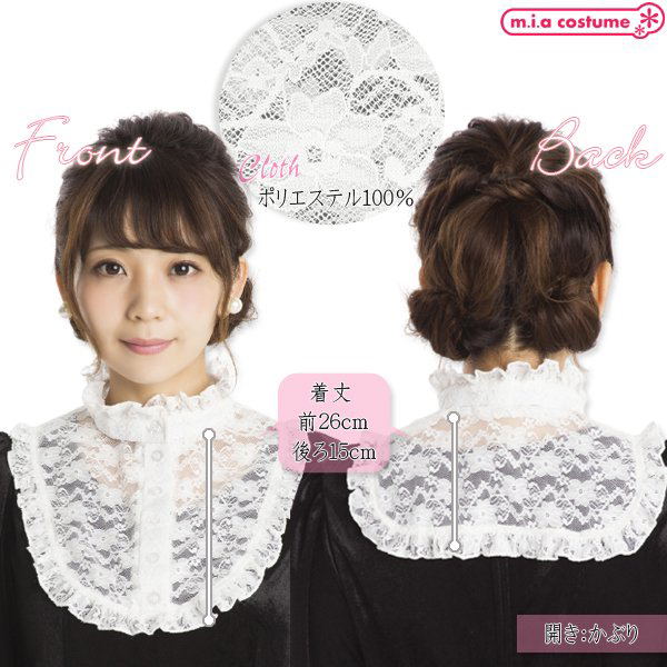 着回し力抜群!セレクトしてオリジナルのコーディネートが楽しめちゃうコスプレシリーズ♪オシャレでかわいい総レース素材がエレガントな雰囲気を演出してくれる付け襟です。 大人な雰囲気のスタイリングにぴったり!セレクトシリーズのワンピースに合わせるのはもちろん、普段着に合わせるのもオススメです♪ |
