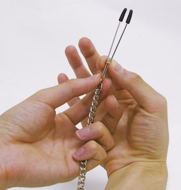 甘い痛みが癖になる!乳首クリップを重みのあるチェーンで繋いだSMグッズ。 リングの位置をずらして、挟む強さを微調整できるニップルクリップに、U字に垂れ下がる長めのチェーンをつけました。 動くたびに重力が働いて、乳首を下へと引っ張ります。 軽く疼くような痛みが、知らぬ間に快感に…!先端をラバーで保護した、安全に使用できるSMグッズです。 |
