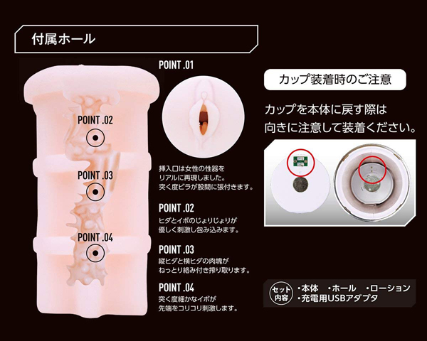 | ■仕様:パッケージ:29.2×20.5×11.5cm 本体:25.0×8.5cm・ホール全長12.5cm セット内容:本体、ホール、ローション、充電用USBアダプター USB充電式 |