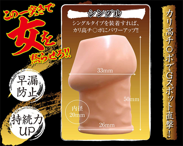 自身のカリクビを強化。 Gスポットを刺激するカリキャップシリーズ。 早漏抑制&持続力アップ!!シングルタイプを装着すればカリ高チ〇ポにパワーアップ。 膣内を掻き回せし、情熱的な一突きで女を黙らせろ!! |