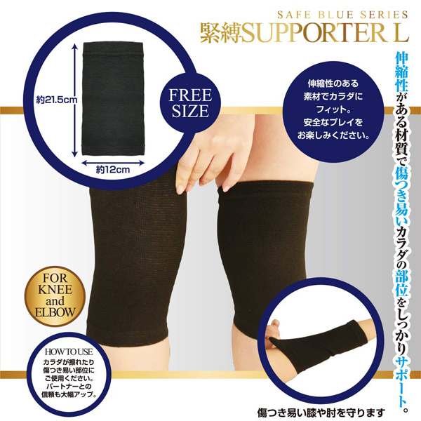 安心・安全で気持ちよくをコンセプトに、青山夏樹がグッズをプロデュース!『セーフブルー シリーズ』緊縛による神経圧迫事故防止のために考案されたサポーターです。 伸縮性がある材質で手首や足首の神経を保護!!擦れたり傷つきやすい部位をしっかりサポート。 パートナーとの信頼度もアップし、安全なプレイをお楽しみ頂けます。 圧迫による麻痺が起こりやすい上腕部・脇下・肘関節・手首関節・指関節・膝関節・足関節などは、筋肉が薄く構造上弱いため、緊縛の際は注意が必要です。 体と縄の間にサポーターを一枚着けるだけで圧迫事故などが防げます。 そのような緊縛プレイに最適な厚み、材質の商品になっております。 Lサイズ |
