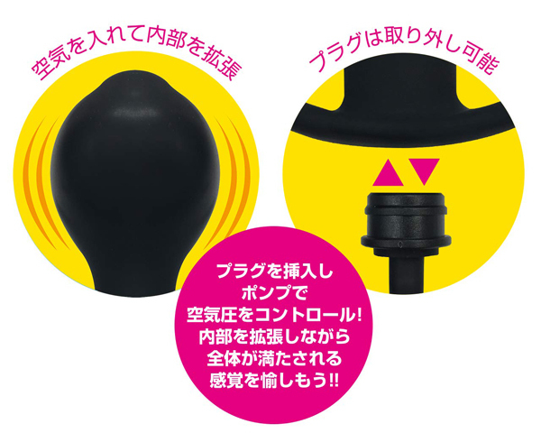 内部で膨らむ拡張プラグ。 プラグを挿入しポンプで空気圧をコントロール!プラグは取り外せるので丸洗いも可能。 ライトタイプは無理なくスムーズに挿入できる形状で内部を拡張しながら全体が満たされる感覚を愉しもう!●丸洗いOK●滑らかな挿入感 ※健康を害する恐れが御座いますので3回以上のプッシュはおやめください。 |