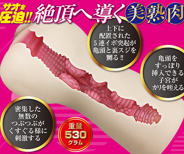 年上淫乱妻の豊満ボディを忠実に再現!肉感溢れる重量530gの肉厚オナホ(非貫通)。 とろけるようなまったり感がサオ全体に絡みつき、上下に施された大きな5連イボ突起で絶頂へと導く♪肉欲に溺れた美熟女と濃密濃厚な時間をこの生膣オナホでぜひ。 |