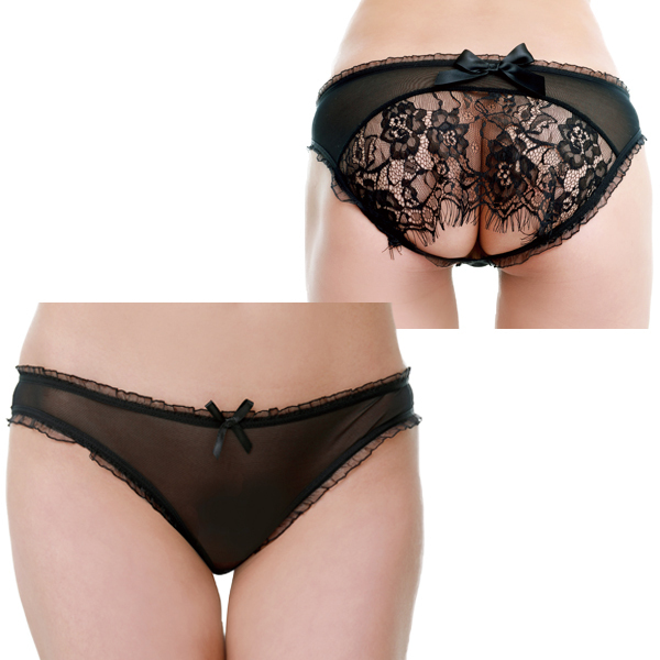 フロントはちょっと大人しめなデザインながら、バックスタイルで挑発するキュートな透明感が楽しめる刺繍デザインが魅力のプレイショーツ。 ブラックのシースルー生地をベースに、フリルを使ったトリミングやリボンの装飾がカワイイ感じを演出してくれるフルバックタイプのショーツで、フロントとバックの印象が大きく違う二面性が楽しめます♪大きくラウンドカットされたヒップサイドには大きめなサテンリボンと、優雅なフローラルレースで装飾され、かなり大胆なデザインになっています! ※刺繍などのデザインが異なる場合がございます。 濡れたままの保管は色移りの原因になります。 |