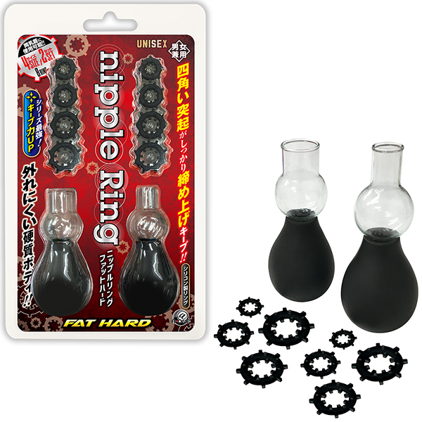 乳首責めや開発にぴったりの「ニップルリング ファットハード」です♪禁断の締め付け感が最高!シリーズ最強のキープ力が自慢で、吸引ポンプで乳首を吸い上げながらリングを装着して勃起状態を維持するなど使い方はアイデア次第♪リングを通したポンプで吸引し、スライドするだけの簡単装着で、ハードなプレイや乳首やクリの開発にも最適!それぞれ吸引口のサイズが違っているので幅広いサイズの方にお使いいただけます♪ |