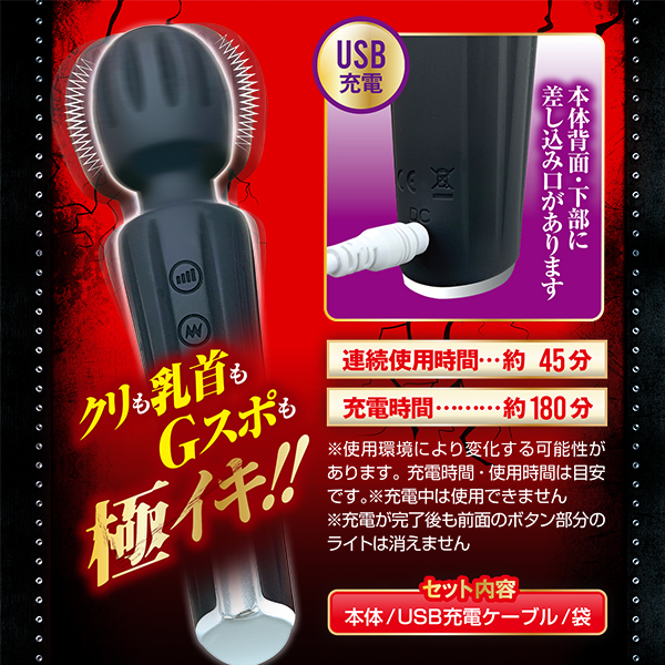 爆イキすぎてエグいッ!悪魔級のシビレ振動を体験せよ!!スタイリッシュな見た目と、軽量でありながら最強の振動の小型デンマ。 全てワンプッシュで操作が行えて簡単。 一体型の小ヘッドで、ネック部分は柔軟性も十分なので強く押し当ててOK!濡れてきたら挿入もOK!手触りのよいさらさらボディは、汚れたらサッと洗い流せるオールシリコン。 多彩で過激な爆振動は20パターンもあり、プラスしてさらに3段階の強さも楽しめます。 普通のデンマじゃ物足りないアナタへおすすめ。 ・シリコン素材・生活防水・USB充電式■充電時間:約180分■連続使用時間:約45分 ※使用状況や環境により時間が変わる場合があります。 |