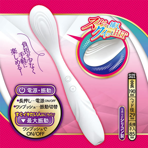 使いやすく、気持ちいい。 スルッと挿入、クイッとHIT!自分を知るオーガズム体験!気持ちいい場所へ届きやすい、ゆるやかカーブ&スティック型バイブ。 小さな卵ヘッドが内部へFIT!ヘッドの凸凹ミゾでグッと押したり、擦ったり、掻き出したり。 膣内だけでなく、全身やクリトリスへ、愛撫のように沿わせるように使っても◎触り心地はなめらかなシリコン製。 スタイリッシュなデザインなので、お部屋でも違和感がありません。 高水準の防水レベル「IPX7」なので、丸洗いでき、お風呂でも使用もOK。 ぐっしょり濡れてもOK♪♪♪♪♪好きな場所を好きなだけ気持ちよく。 快感に正直になろう。 ■充電時間:約120分/連続使用時間:約60分(使用状況や環境により時間が変わる場合があります)。 ・10パターン振動・防水レベルIPX7・シリコン製・USB充電式 ※ネック部分に柔軟性はありません、強く曲げすぎると故障の原因になります。 |