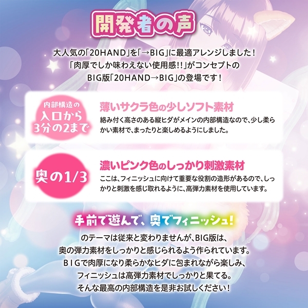 圧倒的なボリューム感としっかりとした包み込みで、まったりとした使用感を楽しめるハンドホールです♪手持ちサイズながら高弾力で柔らかな素材を採用し、心地よい圧迫感とソフトな挿入感を両立しています!内部構造は、前モデルから継承された突き込んだときにしっかりと刺激を与える設計♪さらにリッチな体験を提供するため、肉厚でまん丸な入り口とソフトな素材で作られたメイン部分が、しっかりとフィニッシュへと導いてくれます!BIG版ならではの贅沢な使用感をお楽しみください♪ |