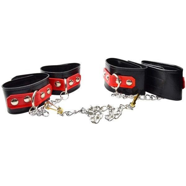 | ■仕様:パッケージ:22.0×7.0×6.0cm 本体:手枷(ベルト27.0×5.0cm・チェーン17.0cm)・足枷(ベルト29.5×6.0cm・チェーン20.0cm)・ジョイントチェーン48.0cm |