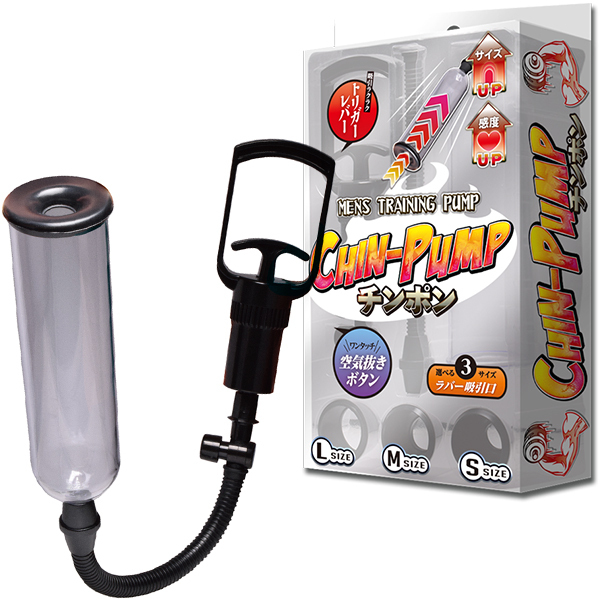 吸引時のトリガーがレバータイプで吸引しやすいペニス増大ポンプ「CHIN−PUMP(チンポン)」。 空気抜きもワンタッチで簡単♪エアリリースボタン付きなので基本的な性能は抑えていて、ラバー吸引口がS、M、Lの3サイズ付属されているのも嬉しいポイント◎。 扱いやすいホース長とワンタッチ空気抜きボタンを採用!大きく成長するにしたがって自由にラバーキャップを選べるので安心です♪初めてのメンズトレーニングギア選びにもぜひどうぞ。 |