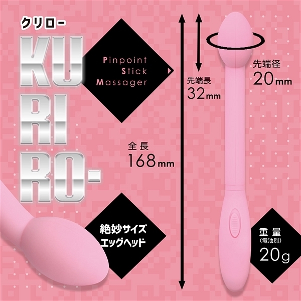 操作性はシンプルな振動オンオフのみの「クリロー」。 こちらは女性に人気のピンクカラーで、気持ちいい部分を優しく振動責めできる超軽量なバイブスティックです♪スマート形状で握りやすく、コンパクトで使い勝手の良い女性のセルフプレジャーアイテム!持ちやすくて軽いので、普段のセルフ使いに大活躍すること間違いなしです♪電源は単4電池1本となります。 |