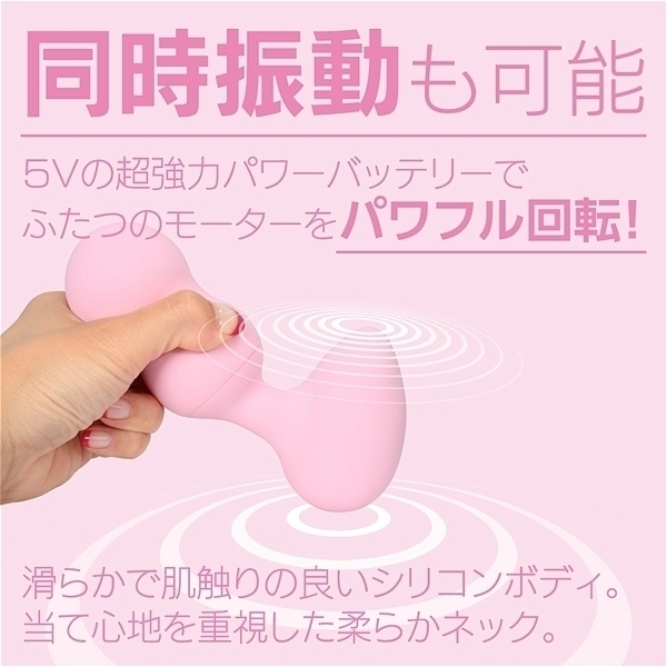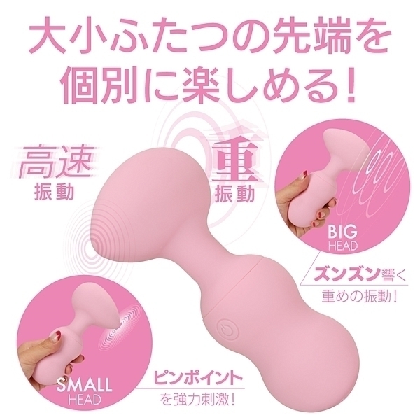 エッグ型ヘッドの左右に大小、サイズの違うモーターを配置!小ヘッドにはピンポイント用に微細振動モーターでポイント刺激を楽しめます。 大ヘッドには重振動の大型モーターを搭載してデンマのダイナミックな振動を体感出来ます。 電圧5Vの強力振動+高品質なオールシリコンボディだから触り心地も非常に滑らかで防水性能も完全防水を実現(防水等級IPX7)当て心地の良さを上げるフレキシブルネックの反発度にもこだわった絶品デンマです。 さらに二つのモーターを個別操作出来るのでお好みに合わせて色々な楽しみ方が出来ます。 もちろん同時振動も可能なので共に最強振動にした時のパワーは圧巻です。 強弱も5段階に微調整が出来るので振動の好みに合わせて楽しめます。 さらに5つのパターン振動も内蔵。 満充電120分で最大60分使用可能。 (使用環境により大幅に増減します。 )●カラー:ピンク |