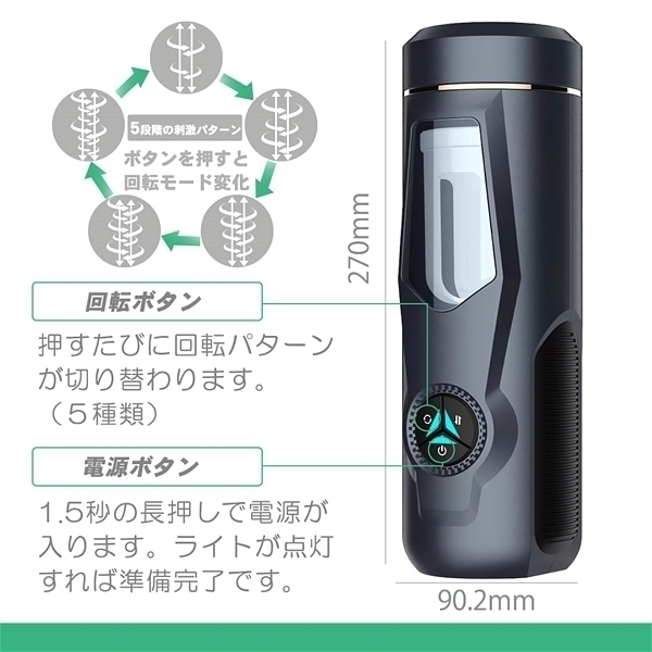 亀頭責めに特化したピストン&回転の電動ホール。 5+5パターンの多彩な動きで激しく責め立てる。 ピストンと回転で亀頭を強力に刺激する電動ホールです。 ピストン+反時計回りの回転パターンが5種類、ピストン+左右への回転パターンが5種類と、計10通りの動作パターンを搭載。 操作パネルもシンプルなので直感的な操作が可能です。 インナーは簡単に取り外して洗えるので常に清潔な状態を保てます。 壁や床などに設置したまま最大150度の角度調整が可能な、強力吸盤も付属しています。 |