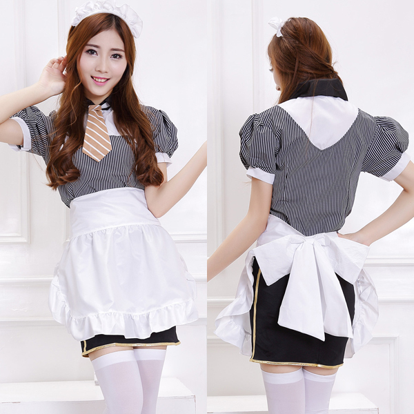 | ■仕様:Mサイズ(平置き):トップスB43cm・着丈51cm・肩幅43cm・袖丈19cm スカート丈52cm・W32〜38cm セット内容:トップス(サイドファスナー)、スカート(ウェストゴム入り・背面ファスナー、パニエ一体型)、エプロン、カチューシャ、ネクタイ(ゴムバンド仕様) |