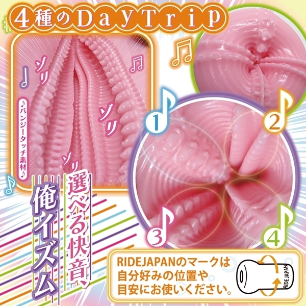 刻むよ!ゾクゾクする刺激奏。 超ゾリ感 無限快路、4つの快音で刻む感覚の旅。 角度を変えるたびに4つの違うBEATが息づく。 ゾリ特化で構成され、刺激を彩る4種DayTrip。 ホールボディのRIDE JAPANマークを目安にして自分のお好みポイントを見つけてください。 選べる快音俺イズムで絶頂の旋律! |