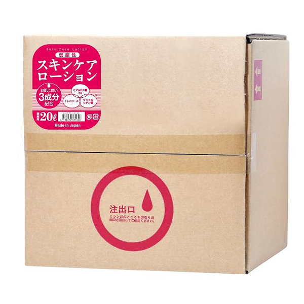 敏感肌や女性に嬉しい弱酸性のスキンケアローション20L。 ヒアルロン酸やトレハロース、グリチルリチン酸といった3種類の保湿成分を配合!レジャー施設や風俗店に最適な大容量サイズ。 詰め替え用としてもお使いいただけます♪ ※大型商品の為、送料が別途必要になります |