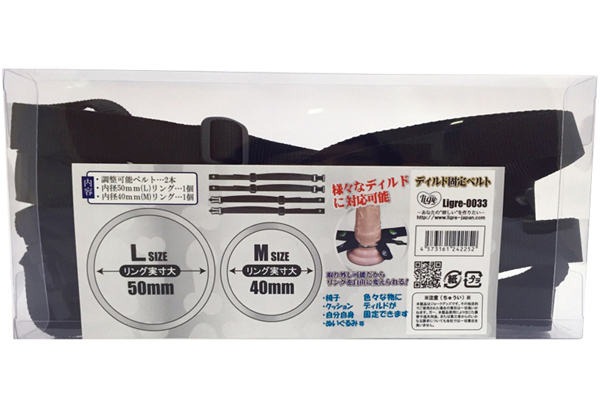 | ■仕様:パッケージ:12.0×26.0×3.0cm 本体:リングM内径4.0cm・リングL内径5.0cm・ベルト4本(55.0〜80.0cm×2.0cm) 重量:51g |