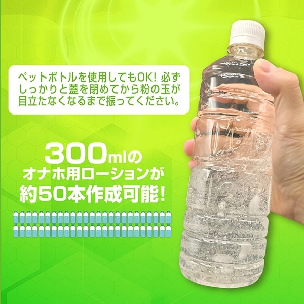 水に溶かして使うパウダータイプのローション原料です!1本で300mlのローションが約50本分も作れます♪必要な分だけ作れるから、いつでもフレッシュな状態で使用可能!作り方は、水やお湯に少しずつ粉を入れてかき混ぜるだけ♪お好みの粘度に調整できるので、使い心地も自分好みに仕上がります!抗菌・除菌成分を配合しているため、衛生面にも配慮されています♪高コスパながら、品質と清潔さを両立したアイテムです!持ち運びやすいコンパクトなボトルサイズで保管もラクラク♪日本国内で製造されており、品質面も安心です!成分はポリアクリル酸Naや重炭酸Naなど、安全性に配慮されたものを使用♪必要な分だけ作れるから、無駄も出にくく経済的です!コスパ重視で、清潔に使いたい方にぴったりのローションの素です♪ |