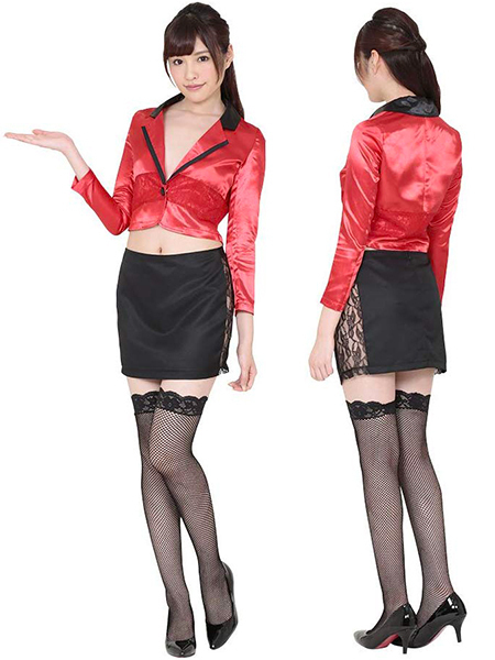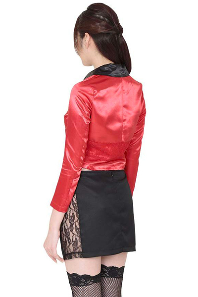 ハロウィンイベントなどに♪カジノディーラーの衣装をお探しならこれ。 光沢感のある短めの真っ赤なジャケットがアクセントに!「ラスベガスディーラー」の登場です♪カジノディーラーをイメージしたこちらのコスチュームは、ジャケットとタイトスカートがセットとなっております。 スカートの側面は大胆にもレース素材で肌が見えてしまうセクシーなデザイン!赤のジャケットを素肌に羽織ることで、更にアダルトな魅力を引き出せそうですね♪カジノを彩るディーラー衣装でハロウィンイベントや撮影会にもせひどうぞ! |