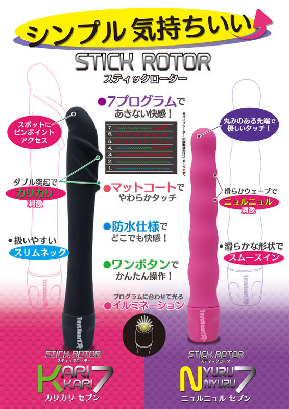 トイズハート社から、スリムな見た目でも高刺激を味わえるスティック型ローター「ニュルニュルセブン」が発売されました!スベスベのフォルムでスムーズな挿入が可能な15cmの長さと23mmの最大径で、波打つうねり形状が快感を演出します。 7種類の振動と連動した光のイルミネーションも楽しめ、防水仕様で手軽にお手入れできるのも魅力です♪シンプルな操作性で使い勝手も良く、スタイリッシュなデザインもオシャレな一本です。 |