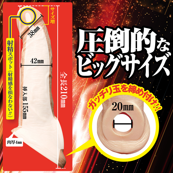 このサックで誰でも巨根になれる!「キングボーイ (Lサイズ)」。 サイズ感・持久力・射精感もアップ!伸縮性もあるエラストマー素材でありながら、タマをガッチリ締め付ける装着感の良さ。 フリーサイズなのでどんな方も装着できます♪サック機能も一体化し、男性機能をサポート!射精スポットを配置したことで、快感度もさらにアップ。 いつものプレイもグッと盛り上がる、漲る男性力をあなたに!Gスポット・ポルチオも十分に刺激でき理想的な亀頭のフォルムと女性が満足する太さを実現。 |