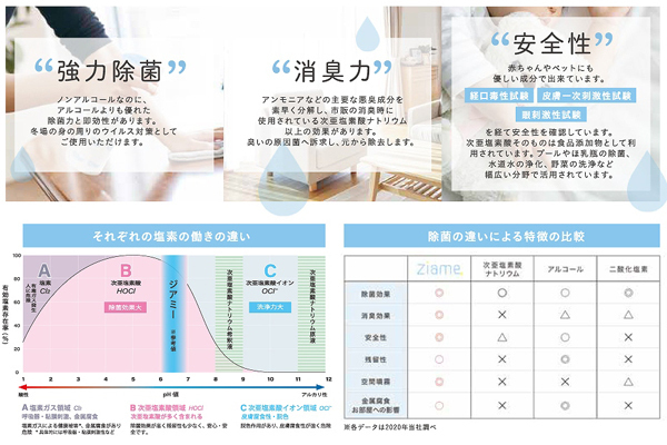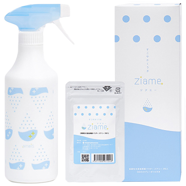 水道水に混ぜて溶かすだけ!いつでも新鮮な次亜塩素酸が作れる顆粒タイプの除菌&消臭液「ジアミー」。 次亜塩素酸は古くなるほどパワーは無くなってしまいますが、ジアミーならいつでも手軽に次亜塩素酸除菌水を作れます♪肌に触れても大丈夫な弱酸性、濃度は自由に調整可能!除菌用マルチアトマイザー「フルガン(b31063)」と合わせても◎500ml分x3包とスプレーボトル付属 |