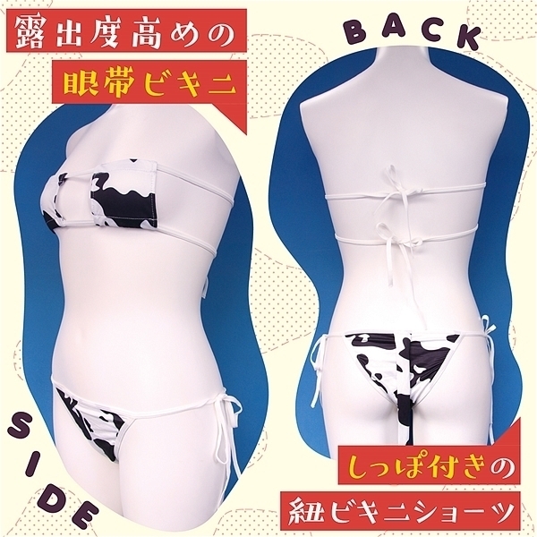大胆でセクシーな牛柄コスチュームで野生の魅力を解き放て!あなたの中のメス牛が疼きだす、露出度高めの眼帯ビキニとしっぽ付きの紐ビキニショーツ。 ●メーカー型番:TMT-1711 |