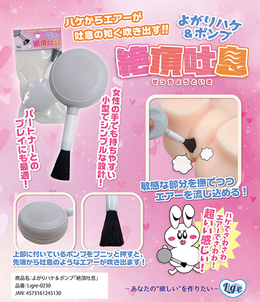 じわじわと感じながら楽しめるハケプレイ!吐息のような空気を発するポンプ機能をプラスした「絶頂吐息 よがりハケ&ポンプ」。 古来からある「よがりハケ」、これに風を出すポンプ機能を追加!まるで吐息のようなエアーがハケの部分、先端から吹き出ます♪女性の手でも持ちやすい小型でシンプルな設計。 パートナーとのプレイにも最適です! |