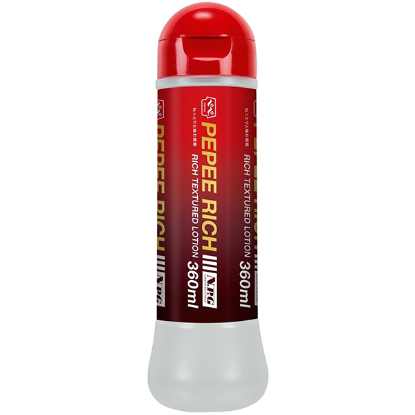 ローションの王道ペペブランドから濃厚なテイストのペペRICHが登場!濃厚なねっとり絡みつくテクスチャでマッサージや愛撫プレイに大活躍♪どってりした濃いめのローションが好みならこれで決まり!ボトルのデザインもかなりスタイリッシュなデザインとなっております。 |