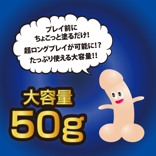 亀頭にサッとひと塗りするだけで力漲る男に変身!パートナーとのロングプレイをサポートする男性用性感ジェル。 感覚を鈍感にしてくれるリドのほかに、男性をパワフルに変えるアルギニンやシトルリンなどの成分もしっかり配合!たっぷり使える50gサイズ |
