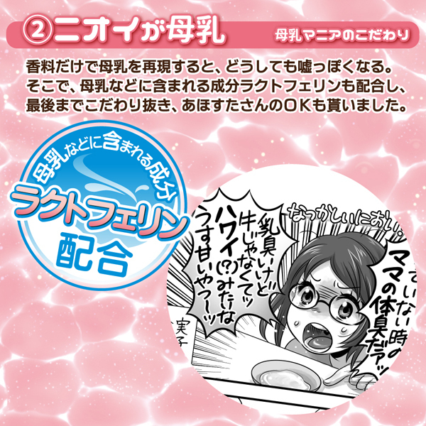 母乳成分ラクトフェリン配合!色や粘度、匂いにまでこだわった公式コラボの母乳ローション355ml。 ブラに染み出すほどの粘度でリアルに演出!あほすたさんも認める懐かしい香り漂う母乳ローション。 思わず吸いたくなる哺乳瓶風のキャップにも注目です♪初回生産限定、裏面に搾乳中イラスト掲載 |