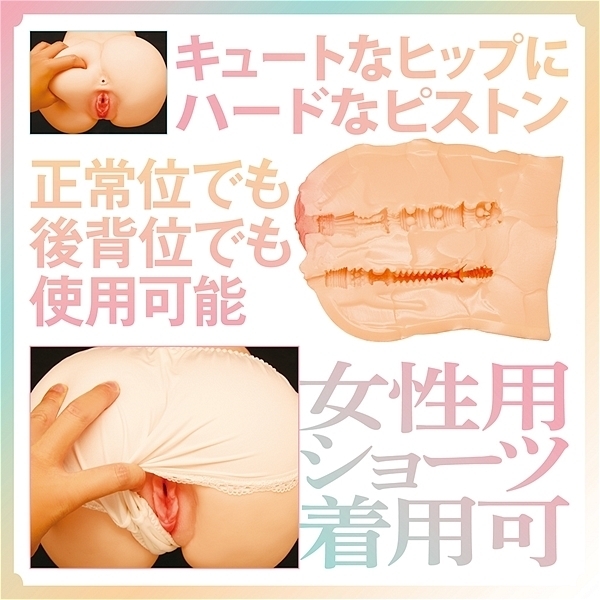 タマトイズAI新技術リアルソフト製法。 手にした瞬間その柔らかさに感動!細部までこだわった至高の触感は本物のお尻の柔らかさを完全再現。 安定感抜群の据置型ホール、2穴使用可能、触り心地は息を呑むほどのリアリティで、キュートなヒップにハードなピストン!正常位でも後背位でも使用可能。 ムッチリ肉感あふれる触り心地。 女性用ショーツ着用可 |