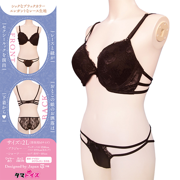 | ■仕様:パッケージ:23.0×14.0×5.5cm 本体:サイズ2L(男性用Mサイズ) 【ブラジャー】アンダーバスト:約80cm バスト:約93cm カップ:Bカップ 【ショーツ】ヒップ:約97〜約105cm |