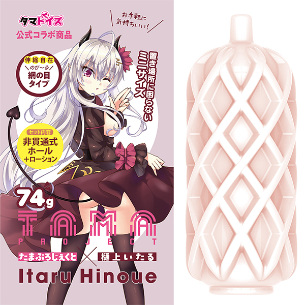 持ち運びにも便利なミニサイズの非貫通オナホです♪タマトイズの専属Vtuber「山田テュテュル」とのコラボ商品で、網の目状のヒダ構造が特徴!伸縮自在の柔らか素材で、気軽に使える設計です♪使い捨てタイプなので、お手入れも簡単!携帯性に優れ、ローションも付属しているので、開封後すぐに使えます♪全長74gの軽量設計で、置き場所にも困りません!イラストは樋上いたるが担当し、細部までこだわりが感じられます♪ |