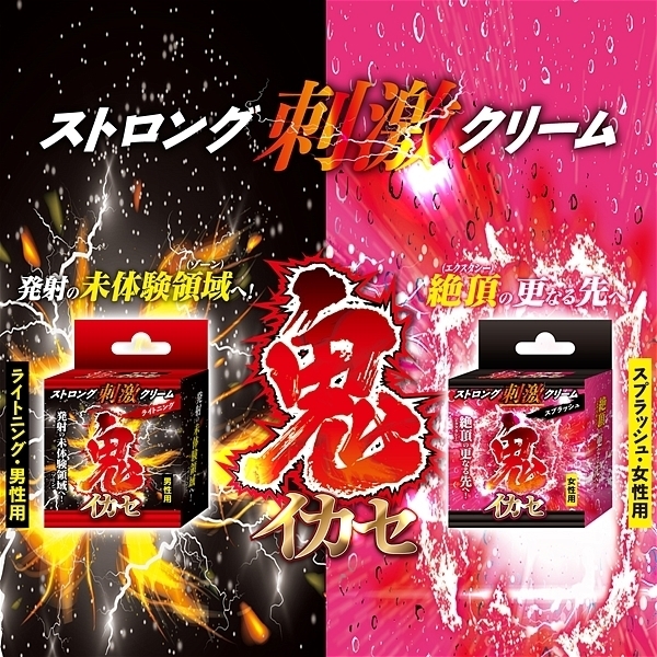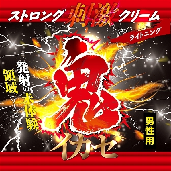 人気の鬼イカセシリーズより、ストロング刺激クリームが登場!!〜発射の未体験領域(ゾーン)へ!〜普通の刺激じゃ満足できないアナタへストロングな強烈刺激をお届け?使った瞬間、電撃(ライトニング)のようなビリヒリ刺激がアナタのチ○ポを容赦なく責めたてる?ライトニングスピードで発射の未体験領域(ゾーン)へアナタを導きます。 6種類の植物エキス配合<成分>水、プロパンジオール、BG(アクリル酸ヒドロキシエチル/アクリロイルジメチルタウリンNa)コポリマー、スクワラン、ヒアルロン酸Na、ブドウ葉エキス、ハマメリス葉エキス、セイヨウトチノキ種子エキス、セイヨウキズタ葉/茎エキス、セイヨウオトギリソウ花/葉/茎エキス、アルニカ花エキス、イソステアリン酸ソルビタン、PEG-40水添ヒマシ油、ポリソノレベート60、フェノキシエタノール、メチルパラベン |