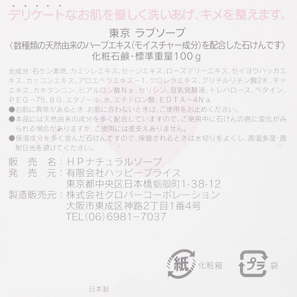 ケアしたつもりになってませんか?デリケートエリアを優しく洗える女性専用ソープ。 ●繊細なデリケートゾーン専用●200万人もの愛用者がいる実績●天然ハーブのロイヤルジャムウ●消臭効果のあるカキタンニン等●美肌・保湿・抗酸化成分も配合●植物由来の天然成分の安心品質●弱アルカリ性でタンパクをオフ●気になる匂いやくすみケアに●香水も楽しめる無香料タイプ。 一般的なボディソープではなかなか落とせないのがデリケートゾーンの気になる汚れ。 血液や脂などのタンパク系汚れには弱アルカリ性の優しい石鹸でしっとりOFFが正解!東京ラブソープはカミツレやローズマリーなどの植物エキスもたっぷり配合、肌を優しくケアしながら美肌へと導きます。 |