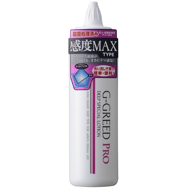 ディープな刺激が突き抜ける、まさにナマ感覚!水溶性の洗い不要ローション「G-GREED PRO(ジーグリード プロ)ディープスペシャル 300g」。 まるで唾液の様な使用感でフェラ系ホールとも相性抜群!殺菌処理および皮膚・粘膜刺激性テスト済みで衛生面も安全性にも優れたスペシャルローション。 回転させるとオープンする先細り型のスクリューノズルで注入もラクラク♪洗い流し不要で後処理も簡単です。 |