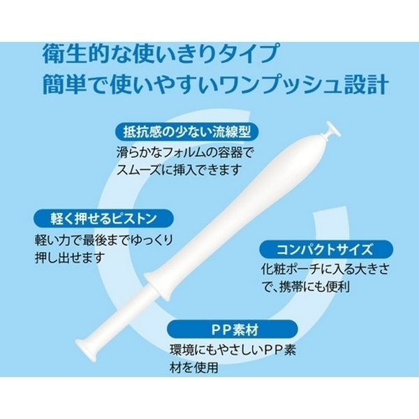 簡単ワンプッシュでデリケートゾーンのお悩みをスッキリ解消!どこでも使える新感覚ジェルタイプの膣内洗浄器「インクリア(3本入)」。 ●ビデに代わる膣専用ケアグッズ●一回一本使い切りの膣洗浄器●弱酸性&無香料の透明ジェル●自浄作用を高める乳酸を配合●洗浄ジェルをダイレクトに注入●直接触れずに使えるペン型容器●簡単かつ衛生的なワンタッチ式●使いやすいなめらかフォルム●婦人科医との共同開発で安心●携帯しやすい個包装×3本入り。 ニオイやおりもの、乾燥が気になる時や生理の終わりかけにも!タンポンと同じような注入方法で気軽に使えるジェルタイプの膣洗浄グッズ。 水で善玉菌も一緒に洗い流してしまうビデとは違い、洗わず直接注入して乳酸を補うことで膣内の自浄作用を高め、膣内環境の改善をサポートする新感覚のデリケートゾーン用ケアグッズです。 |