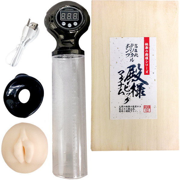 快楽の追求から生まれた極上の逸品!快楽の殿様シリーズが贈る高圧式の電動ペニスポンプ。 ●品格漂う桐箱風パッケージ入り●目視&操作簡単なデジタル表示●細かい目盛り付きのシリンダー●USBの電動バキュームで高圧吸引●リアルな挿入口パーツも付属。 日々のトレーニングで殿様級のビッグマグナムに♪リアルな挿入口と高圧バキュームにより、チントレと同時に快感も得られるペニス増大グッズです。 |