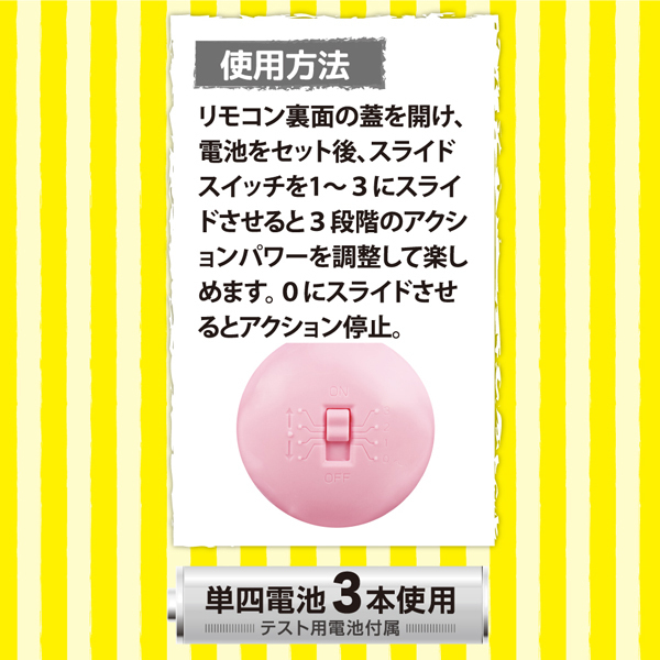 | ■仕様:パッケージ:21.3×7.8×3.7cm 本体:ローター6.0×2.5cm・リモコン6.4×2.7cm 重量:58g 電池:単四電池×3本使用 |