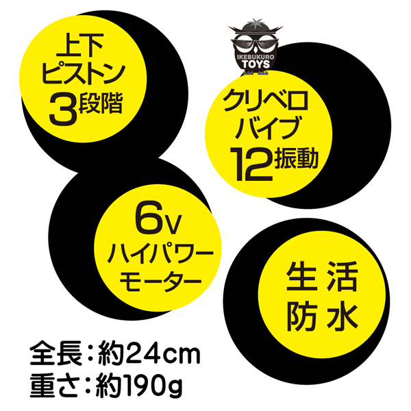 毎秒3往復!超高速ピストンで奥を貫く6Vモーター内蔵の電池式バイブ。 リアルでは体験できない3段階スピードでドコドコと激しく奥突き!さらに12種類の目にも止まらぬ高速クンニで追い打ちをかける♪単4電池を4本使用、ブラックカラー |