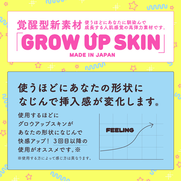 高い伸縮性&耐久性を誇る覚醒型新素材「GROW UP SKIN」採用!肉厚300g、ギュっと締め付け絡みつく非貫通オナホ。 張り巡らされたヒダと押し合うイボのプレスで極上快感!使えば使うほど肌に馴染み成長する人肌感触の高弾力スキン仕様で、特に3回目以降はより気持ちいい挿入感を味わえます♪パッケージは「すーぱーぞんび」氏◎日本製、収納袋&ローション付属 |