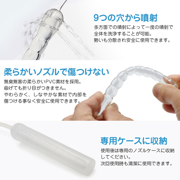 オナホをいつでも清潔に!幅広い用途で使用できる!手動式ポンプ型多用途洗浄器。 9つの穴から多方面に噴射!多方面での噴射によって一度の噴射で全体を洗浄することが可能。 勢いも分散され安全にやさしく洗浄できます。 ノズルは無臭無害の柔らかいPVC素材を採用。 やわらかく、しなやかな素材で内部を傷つける事なく安全に使用できます。 45cmのチューブが使い勝手抜群。 オナホールの洗浄だけでなくプレイ前後の洗浄、注入プレイ等幅広く使用できるマルチポンプキットです。 使用後はノズルカバーを装着し清潔に保管できます。 |