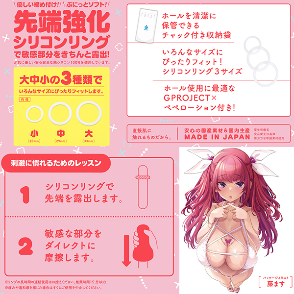 まったり好きにはたまらない!刺激がほぼゼロの超絶マッタリ系非貫通型オナホ「PUNI VIRGIN(ぷにばーじん) ZERO Lv.2」。 やわらかくて締まりが良く、挿入するとニュルンと入っちゃう♪やわらかとろ〜り、とぅるんとぅるんとした感触でとろけるような快感が味わえます。 大中小3種類用意された付属のシリコンリングのおかげでいろんなサイズにぴったりフィット!優しい締め付けを味わいながらレッスンが楽しめるトレーニングオナホとなっています。 |