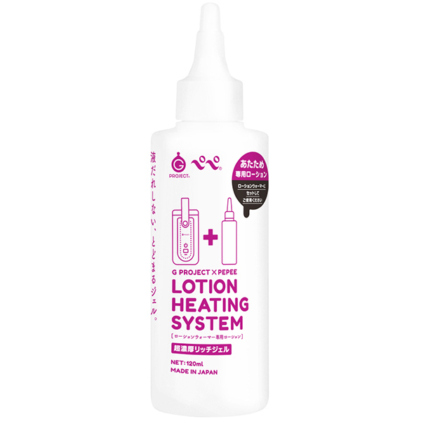 液だれしない、とどまるジェル。 G PROJECT×PEPEEによるLOTION HEATING SYSTEM ローションウォーマー(v02705)で温める専用ローション!より温かく感じるように独自に開発しました!まとわりつく感触が心地いい超濃厚ジェルタイプ。 片手で簡単!ひねって出せるスライド式キャップを使用しています。 直接肌に触れるものだから、安心の国内生産&国産素材。 ※常温でのご使用も可能です。 |