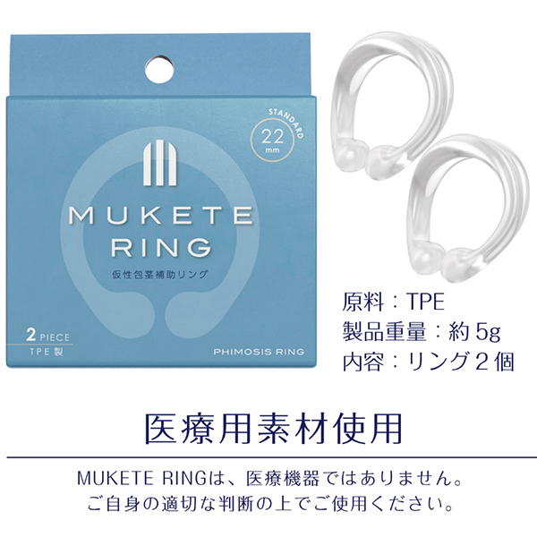 抜群のフィット感、仮性包茎補助リング!!優しいフィット感、安心の2個入り、おやすみ用に最適です。 医療用素材を使用し高品質で安全にご使用いただけます。 ●スタンダードタイプ ※MUKETE RINGは医療機器ではありません、ご自身の適切な判断の上でご使用下さい。 |