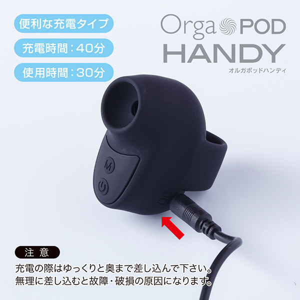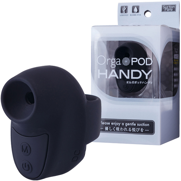 可愛いデザインと確かな吸引力で人気のオルガポッド・シリーズから指にはめて使用する超小型サイズの「オルガポッドハンディ(ブラック)」が登場!3段階のパワー強弱と7段階の振動パターンが楽しめて、お肌に優しいシリコン素材だから、つるっとした柔らかい感触をお楽しみいただけます。 40分の充電でおよそ30分の連続使用が可能♪IPX5相当の防水性能を完備しており、使用後は優しく洗い流すことも可能です(水の中に沈めることは、おやめください)。 操作も簡単で電源スイッチを長押しで吸引スタート!小型なのでパワーでは他のオルガポッド・シリーズに敵いませんが、優しく心地よい吸引振動をお届け致します♪カラーバリエーションはピンク・ブルー・ブラックの3色展開!小型で使いやすい、魅惑の吸引体験をお楽しみください。 |