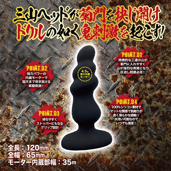 菊門広げ挿入せよ!敏感な部分を強力な振動と独特な三山ヘッドが鬼刺激し悶絶必至!!4.5Vの強力パワー&10ファンクションシステム搭載&100%シリコンの電動アナルイカセプラグ登場!!強力パワーの内蔵モーターで脳天まで突き抜ける振動刺激! |